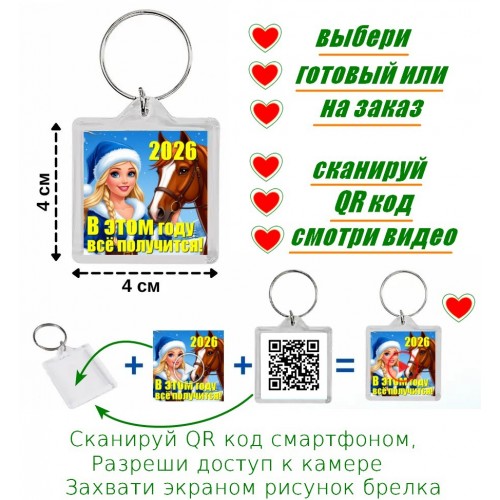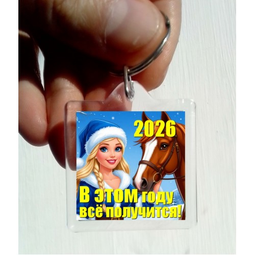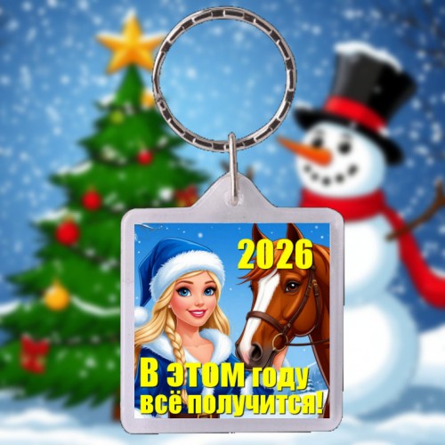 Поздравление от Снегурочки с Новым Годом 2026 (модель 04)- на ФлэтЗи брелоке с дополненной реальностью - в год огненной красной лошади.