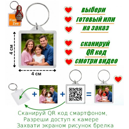 Фото с близкими, родственниками (семейное). На "волшебном брелке ФлэтЗи" - с доступным просмотром видео по QR коду на задней стороне брелка.